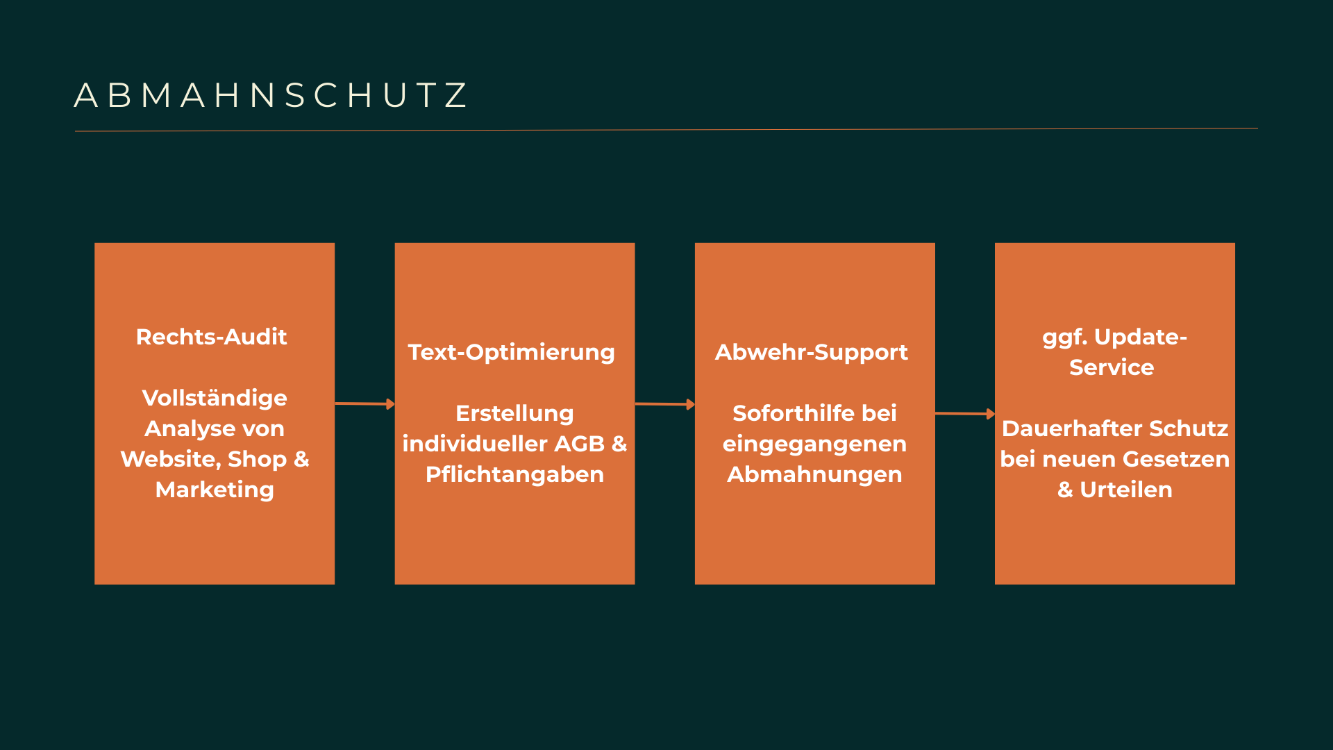 Ein kleiner Fehler im Impressum, eine unvollständige Datenschutzerklärung oder eine falsche Preisangabe im Online-Shop können tausende Euro kosten. Abmahnungen sind nicht nur teuer, sondern binden auch wertvolle Zeit und Energie. Mit dem SOLVE-Abmahnschutz sichern wir Ihren Webauftritt und Ihr Marketing umfassend ab. Wir identifizieren Schwachstellen, bevor andere es tun, und wehren unberechtigte Angriffe von Konkurrenten oder Abmahnvereinen entschlossen ab.