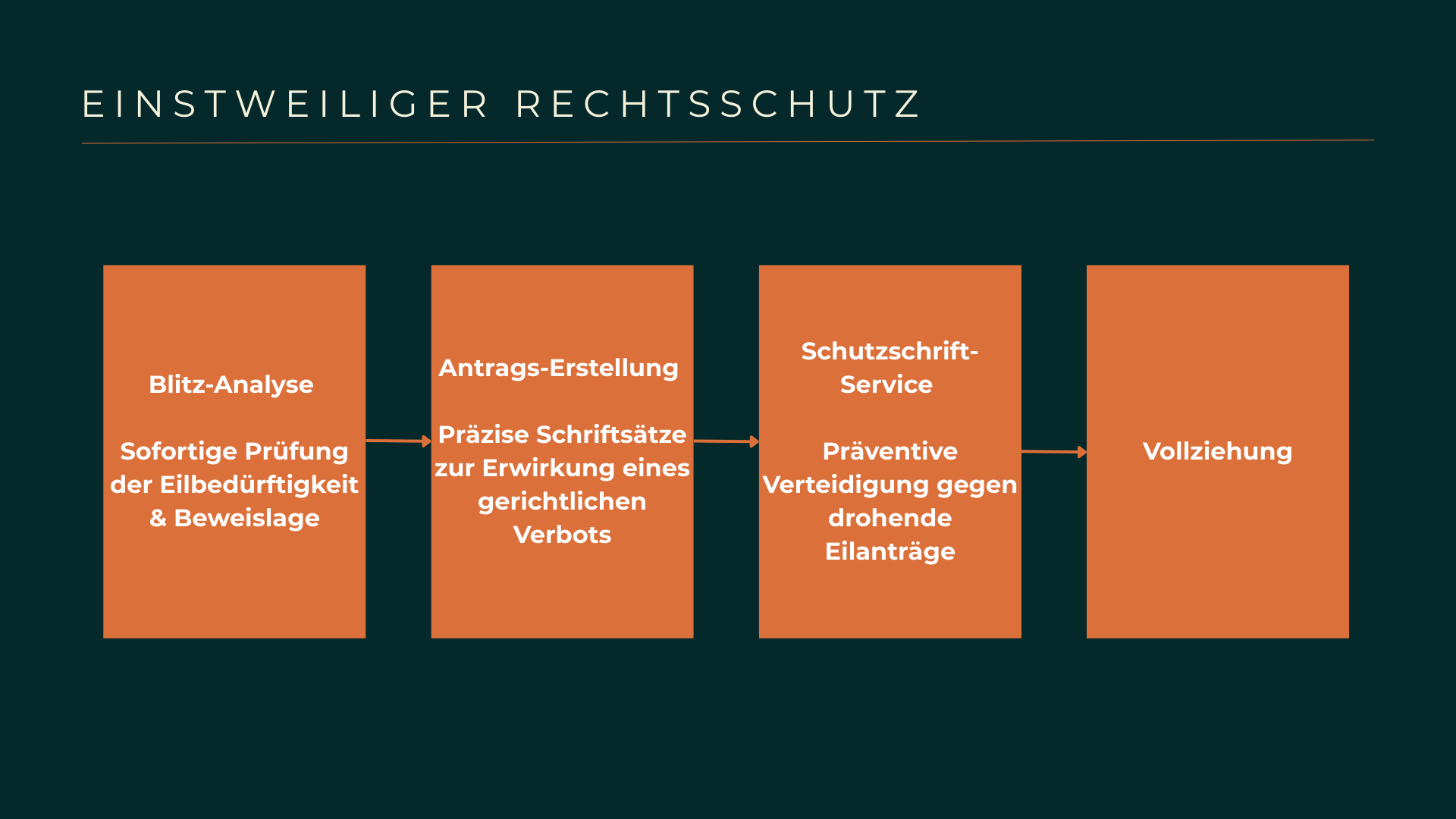 Die Kanzlei SOLVE ist darauf spezialisiert, die Instrumente des einstweiligen Rechtsschutzes präzise und effizient für Unternehmer einzusetzen. Wir prüfen sofort die Dringlichkeit Ihres Anliegens und bereiten die notwendigen Anträge so vor, dass Gerichte oft ohne mündliche Verhandlung innerhalb von 24 bis 48 Stunden entscheiden können.