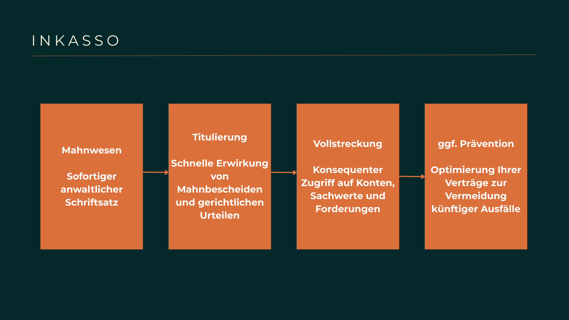 Parallel dazu überwachen wir im Langzeitinkasso die Vermögensverhältnisse titulierter Schuldner, um bei einer Verbesserung der wirtschaftlichen Lage sofort erneut zuzugreifen. Wir implementieren in Ihrem Unternehmen präventive Prozesse wie optimierte AGB und rechtssichere Rechnungsstellungen, damit künftige Zahlungsausfälle bereits im Vorfeld minimiert werden. Durch die konsequente Geltendmachung von Verzugszinsen und Inkassokosten sorgen wir dafür, dass die finanzielle Last des Verzugs weitestgehend vom Schuldner getragen wird. Wir unterstützen Sie bei der steuerlichen Ausbuchung uneinbringlicher Forderungen, damit Sie zumindest die bereits abgeführte Umsatzsteuer vom Finanzamt zurückerstattet bekommen.
