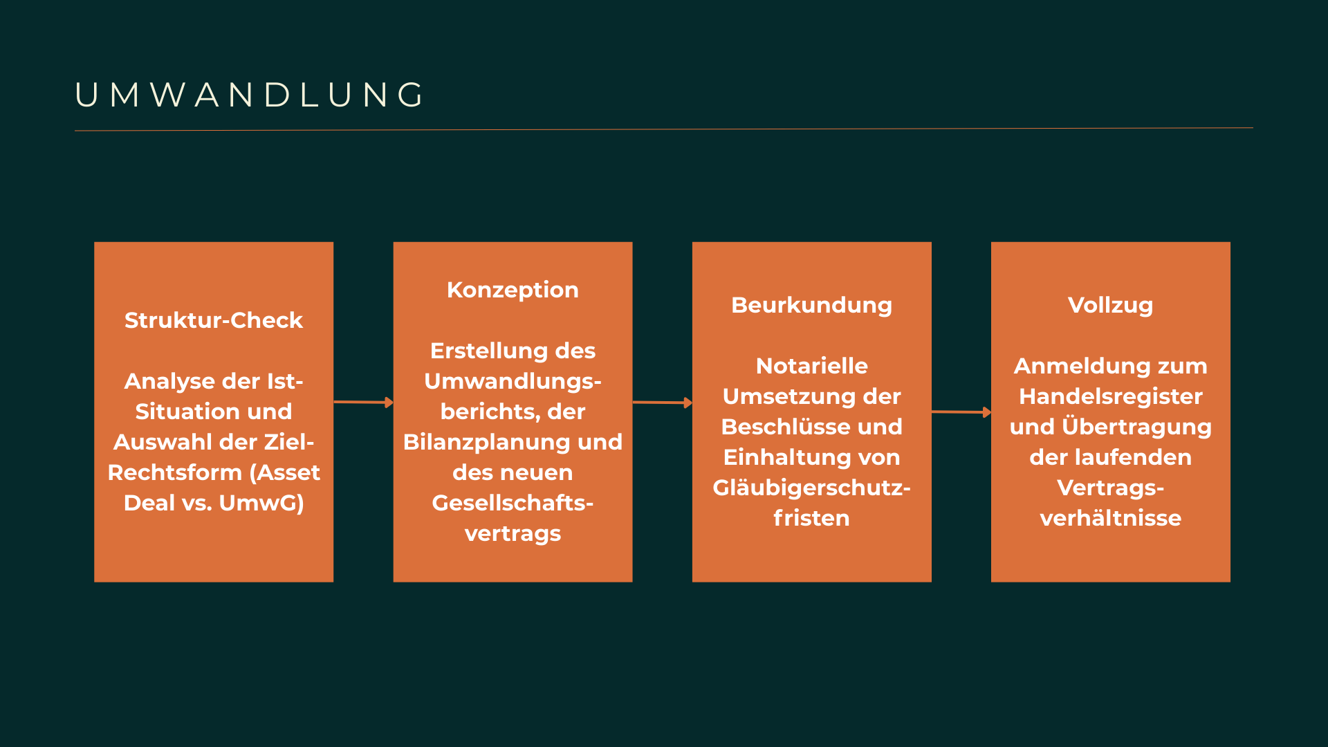 Parallel dazu bereiten wir die umfassenden Berichte der Geschäftsführung vor und leiten bei Bedarf die gesetzlich vorgeschriebene Prüfung der Umwandlung durch externe Sachverständige ein. Wir steuern den gesamten Prozess der Mitarbeiterinformation gemäß § 613a BGB, um den Übergang der Arbeitsverhältnisse rechtssicher zu gestalten und Unruhen in der Belegschaft zu vermeiden. Unsere Experten begleiten die notarielle Beurkundung aller erforderlichen Beschlüsse und überwachen die korrekte Anmeldung zur Eintragung in das Handelsregister am Sitz aller beteiligten Rechtsträger. Wir sichern die Kontinuität Ihrer bestehenden Verträge und Lizenzen ab, indem wir die Rechtsnachfolge gegenüber Banken, Vermietern und Vertragspartnern proaktiv und formal korrekt kommunizieren.