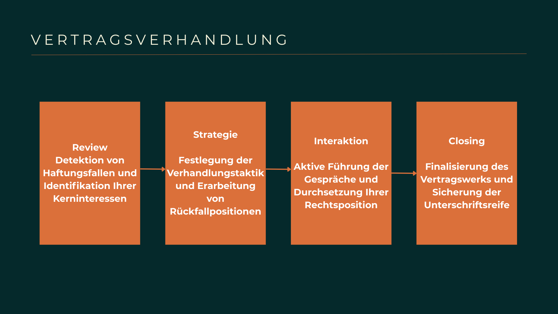 In komplexen Geschäftssituationen entscheiden oft Nuancen im Kleingedruckten über den wirtschaftlichen Erfolg oder existenzbedrohende Haftungsrisiken. SOLVE übernimmt für Sie die komplette Verhandlungsführung, erkennt versteckte Fallstricke sofort und reagiert rechtskundig auf die Taktiken Ihrer Verhandlungspartner. Wir agieren als Ihre strategische Speerspitze, um das bestmögliche Ergebnis für Ihr Unternehmen zu erzielen und gleichzeitig eine rechtssichere Vertragsbasis für die Zukunft zu schaffen.