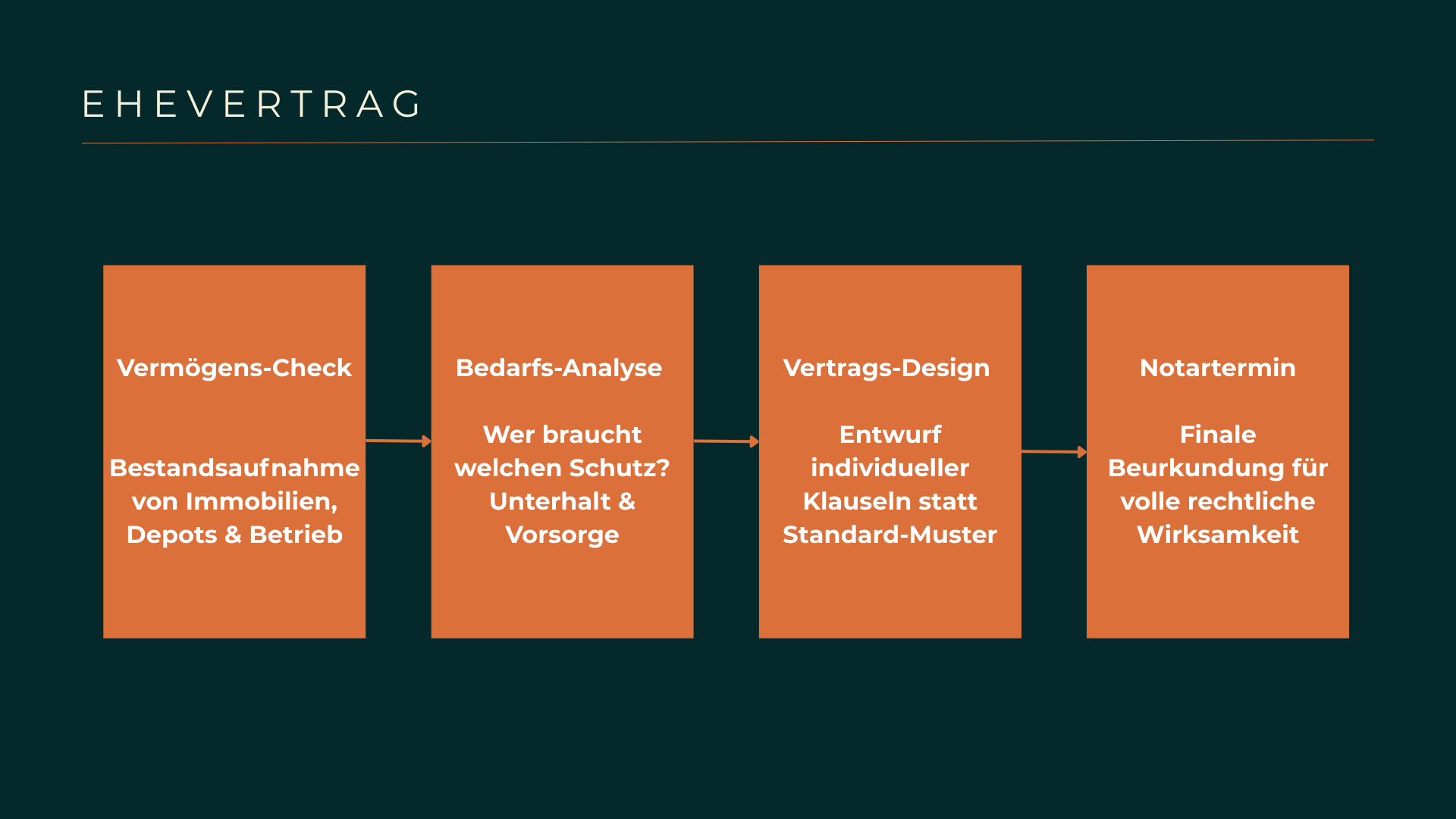 Wir moderieren die Gespräche zwischen den Partnern mit Fingerspitzengefühl, damit der Vertrag als gemeinsames Projekt und nicht als Streitpunkt wahrgenommen wird. Unser Team koordiniert für Sie den gesamten Prozess bis zur Unterschrift beim Notar und stellt sicher, dass alle juristischen Details präzise umgesetzt werden. Wir bieten Ihnen Sicherheit bei Erbrechtsfragen und der gegenseitigen Absicherung im Falle einer schweren Krankheit. Vertrauen Sie auf SOLVE, um ein rechtliches Fundament zu bauen, das so individuell ist wie Ihre Beziehung selbst. Mit uns gestalten Sie Verträge, die Ihnen die Freiheit geben, sich ganz auf Ihr gemeinsames Glück zu konzentrieren.