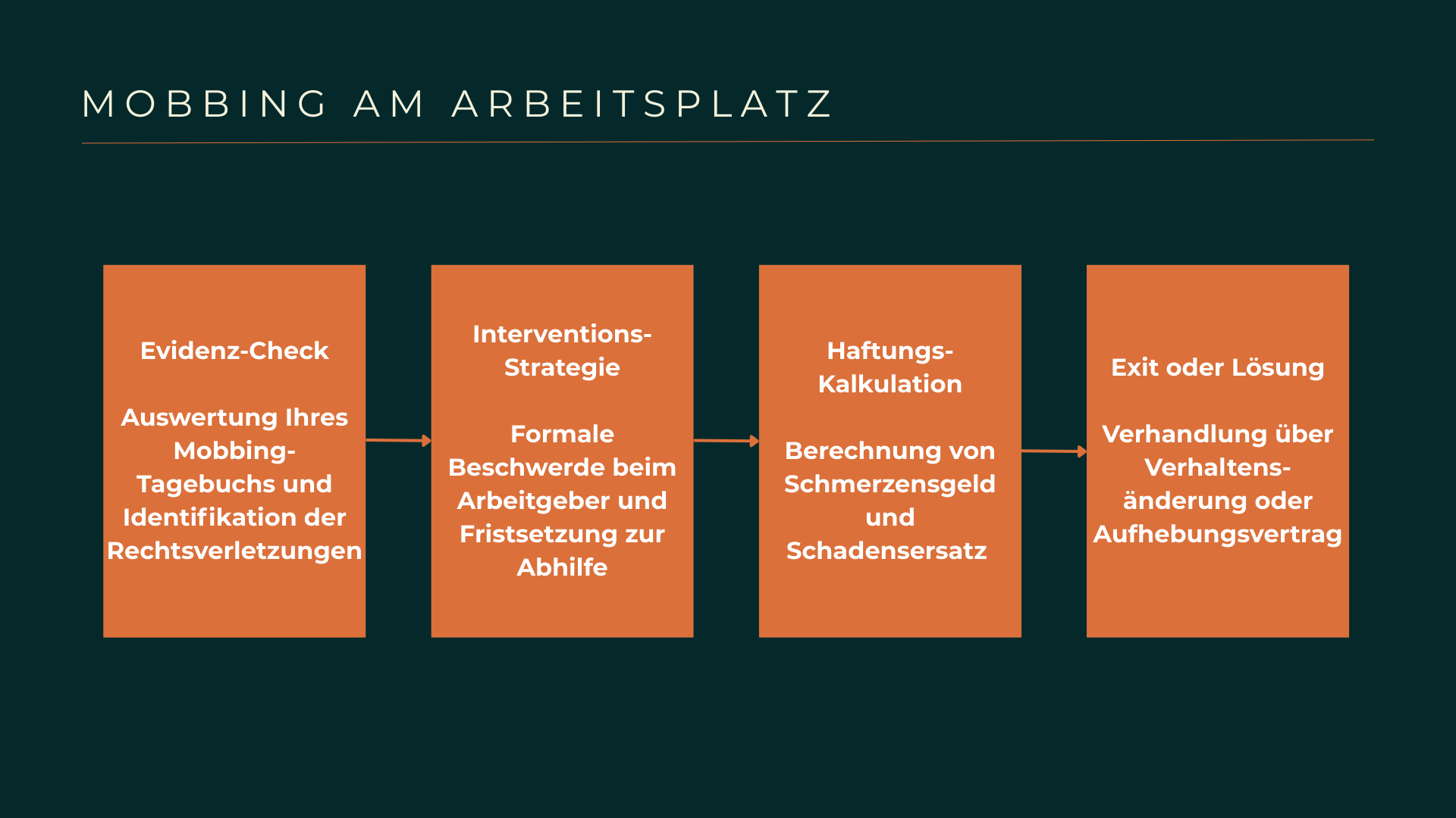 Systematisches Schikanieren, Ausgrenzen oder Demütigen am Arbeitsplatz ist kein „harter Führungsstil“, sondern eine schwerwiegende Verletzung Ihrer Persönlichkeitsrechte und der Fürsorgepflicht des Arbeitgebers. Mobbing zerstört Karrieren und die Gesundheit. SOLVE tritt an Ihre Seite, um den Psychoterror zu stoppen. Wir dokumentieren die Vorfälle rechtssicher, führen die notwendige Konfrontation mit dem Arbeitgeber und setzen Ihre Ansprüche auf Unterlassung, Schadensersatz und Schmerzensgeld mit aller Entschlossenheit durch.