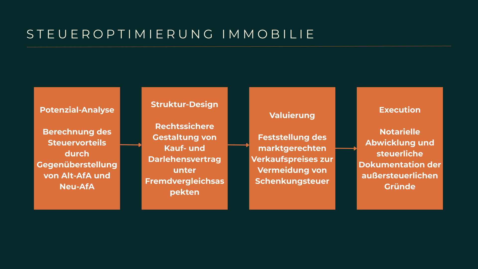 Parallel dazu koordinieren wir die notwendigen Verkehrswertgutachten, um den neuen Kaufpreis gegenüber dem Finanzamt objektiv zu rechtfertigen. Wir beraten Sie zur steuerfreien Veräußerung nach Ablauf der 10-jährigen Spekulationsfrist, um den Buchgewinn steuerfrei zu realisieren und das AfA-Volumen für den Käufer zu vervielfachen. Unsere Experten implementieren Schutzmechanismen wie Rückauflassungsvormerkungen, damit Sie trotz des Verkaufs die Kontrolle über das Familienvermögen behalten. Wir prüfen die Grunderwerbsteuer-Befreiungen (z. B. bei Verkäufen in gerader Linie oder zwischen Ehegatten), um die Transaktionskosten auf ein Minimum zu reduzieren. Durch die Kombination aus neuem Abschreibungspotenzial und Zinsabzug des Verkäuferdarlehens verwandeln wir steuerpflichtige Mieteinnahmen in steuerfreie Vermögenszuwächse.